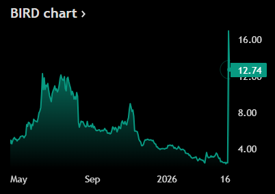 - Shares of Allbirds BIRD skyrocketed 583% Wednesday after the failed footwear brand announced a pivot into AI compute infrastructure just days before its planned shutdown. The stock jumped from under $3 to about $17 in what you might call a plot twist.